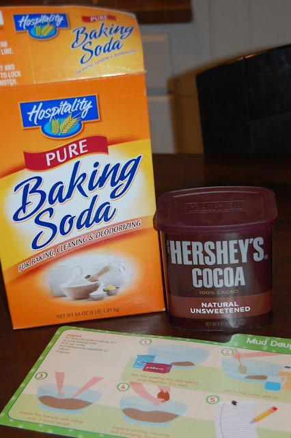Mother Goose Time included this awesome homemade play dough recipe that could be used as the dirt for our mud pies! It called for chocolate pudding mix, which I didn’t have on hand, so I used a 1/4 cup of cocoa powder and it worked perfectly!