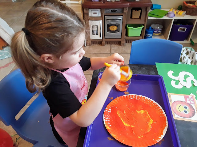 On our SUN Day, we only did the Make and Play craft which was creating a Sun Mask. We also talked about the letter S. She wasn’t into doing much else and wanted to play outside so that’s what we did 🙂